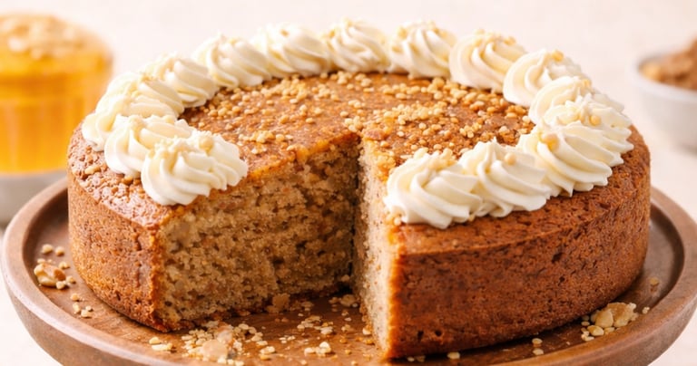 A soft, nourishing millet cake topped with smooth frosting and naturally rich flavors.